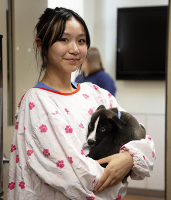 JULIA AS A VETERINARY ASSISTANT WITH SHELTER CAT GRAYSONJulia’s story is a glimmer of hope. Nationwide, there is a growing shortage of veterinary professionals – there are simply not enough people to care for all the pets. This is doubly problematic in the world of shelter medicine; it can make it difficult to find qualified staff, and also results in a general lack of affordable, available veterinary care – one of the top reasons why people surrender their animals to shelters like HSSV.