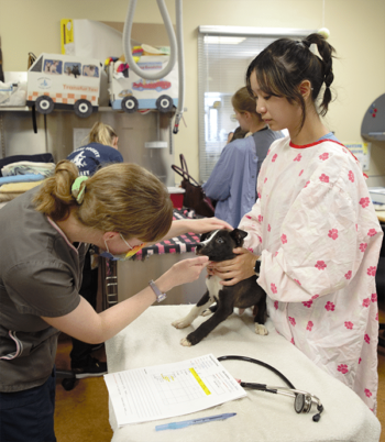 LEAP INTERN KYRA ASSISTS WITH A PUPPY EXAMINATION“Kyra and Clare were quick learners and so eager to be here and learn new things,” Dr. Kamiya says. “It was a perfect match culturally and such a great experience. Kyra has expressed interest in applying for a Veterinary Assistant position here at HSSV, so we’re very excited. Her plan is still to go to veterinary technician school and I think she could probably be a veterinarian if she really wanted to.”
