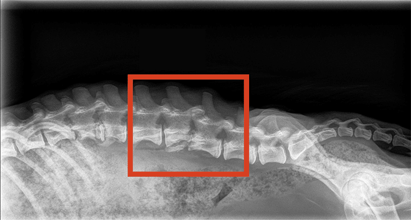 AN INFECTION CAUSED BY MIGRATING FOXTAILS HAS CAUSED FRACTURES IN TWO OF STAR'S VERTEBRAEStar’s X-rays revealed that one of these foxtails had migrated near her lower spine. She was diagnosed with a painful condition called Discospondylitis, which occurs when an infection affects both the bones of the spine and the tissue between them. In Star’s case, the infection was severe enough that it caused fractures in two of her vertebrae. Swelling was also pushing on Star’s spinal cord, causing pain and nerve disruption that made it difficult for her to walk.