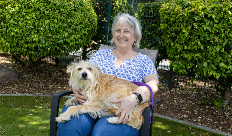 STAR THRIVES IN HER FOSTER HOMEStar is now thriving at home with Kathi, Dave, and her two chihuahua siblings. “She loves people. She’s just such a lover, and such a happy dog,” Kathi shares. “In a lot of ways, she is a very positive influence; she loves to go for walks, which helps us to get our exercise. The relationship between her and my husband is incredible – she’ll spend as much time as possible on Dave’s lap for cuddles.”